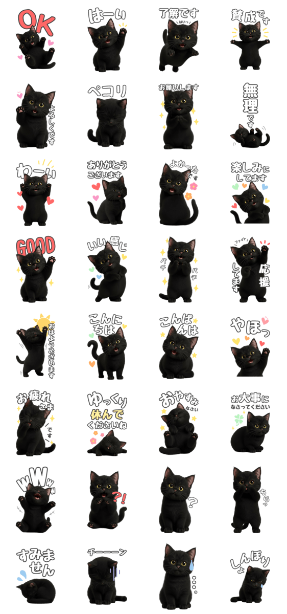 ふわふわ黒猫『基本スタンプ』2 -LINEスタンプマニア