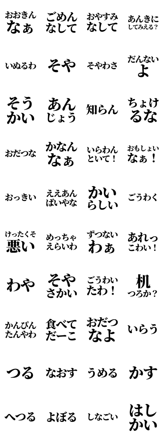 三重県の方言(伊賀弁)LINEスタンプ!見やすい黒文字で「ごめんなして」「おやすみなして」等挨拶を厳選。仕事や家族の連絡に便利な丁寧な敬語入り!背景透過で着せかえ不問