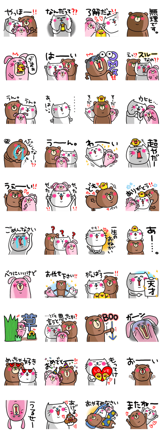 ウサくまネコがあなたの気持ちを伝えます