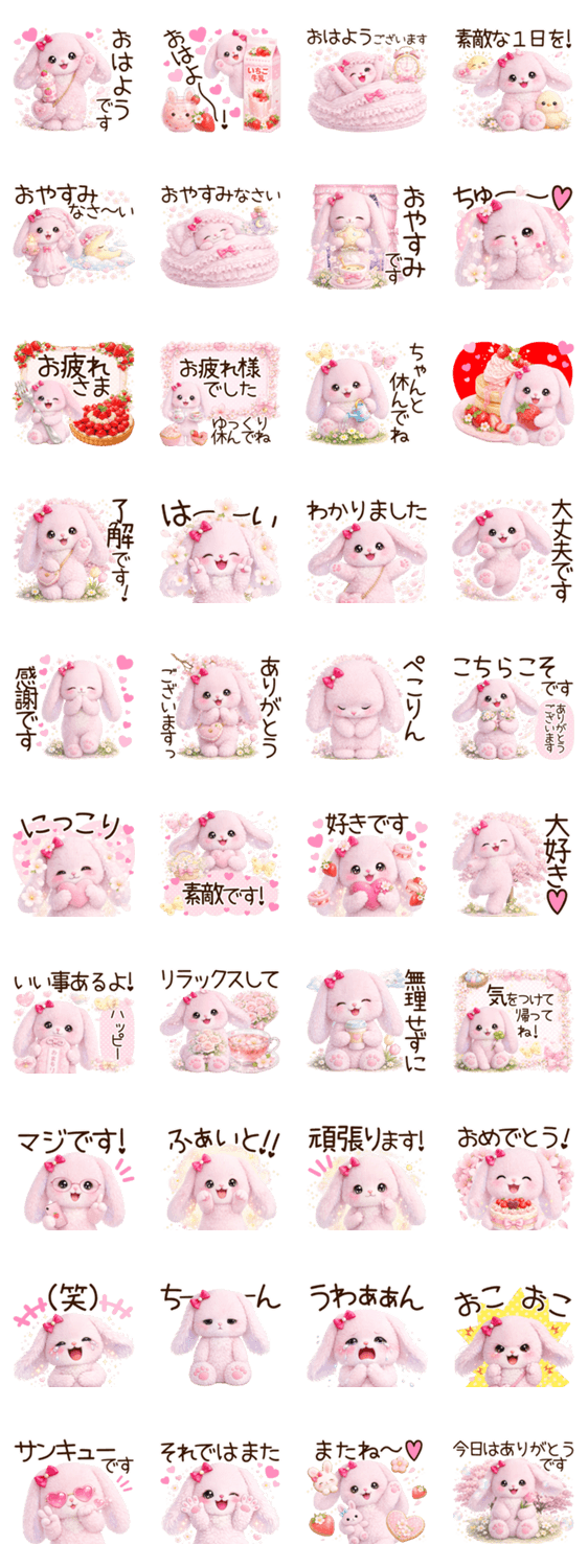 ピンクがかわいい春爛漫♡にでも送れるうさぎスタンプ♡恋人・友達・家族に!(大人/カップル/ハート/夫婦/日常/彼氏/彼女/ピンク/夢かわ/毎日/連絡/桜/花/年中/優しい)