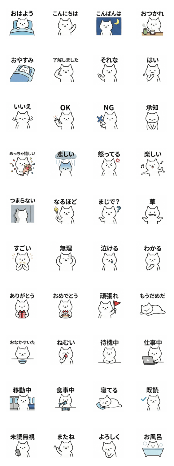 白ネコのあいうえお・・・ってるスタンプ
