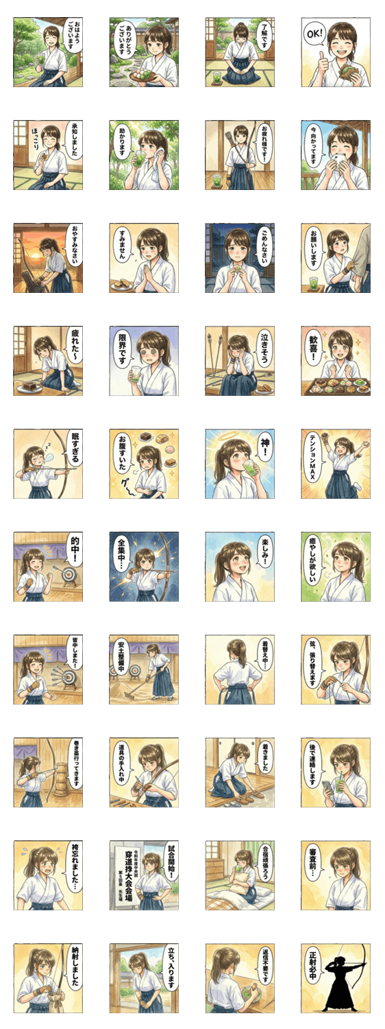 弓道女子と和菓子スタンプ 抹茶 的中! -LINEスタンプマニア