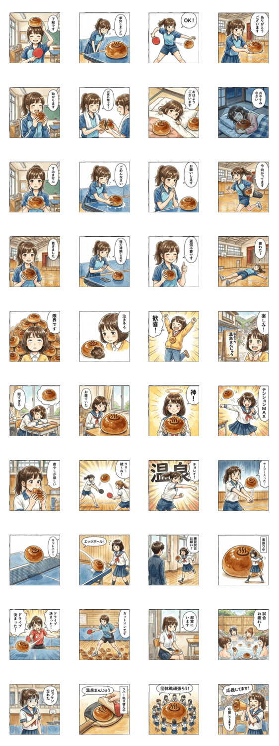 卓球部女子×温泉まんじゅうスタンプ -LINEスタンプマニア