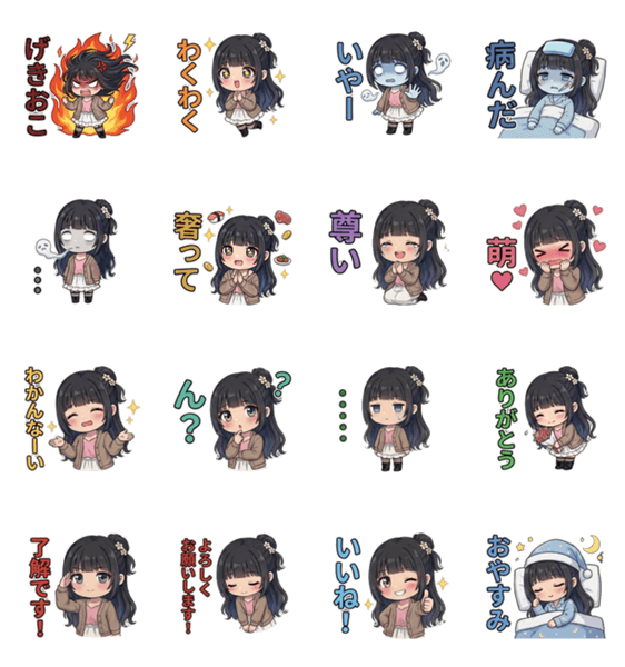友達や同僚に毎日使える、可愛い女の子の日常スタンプ♪ダークモード/老眼対応