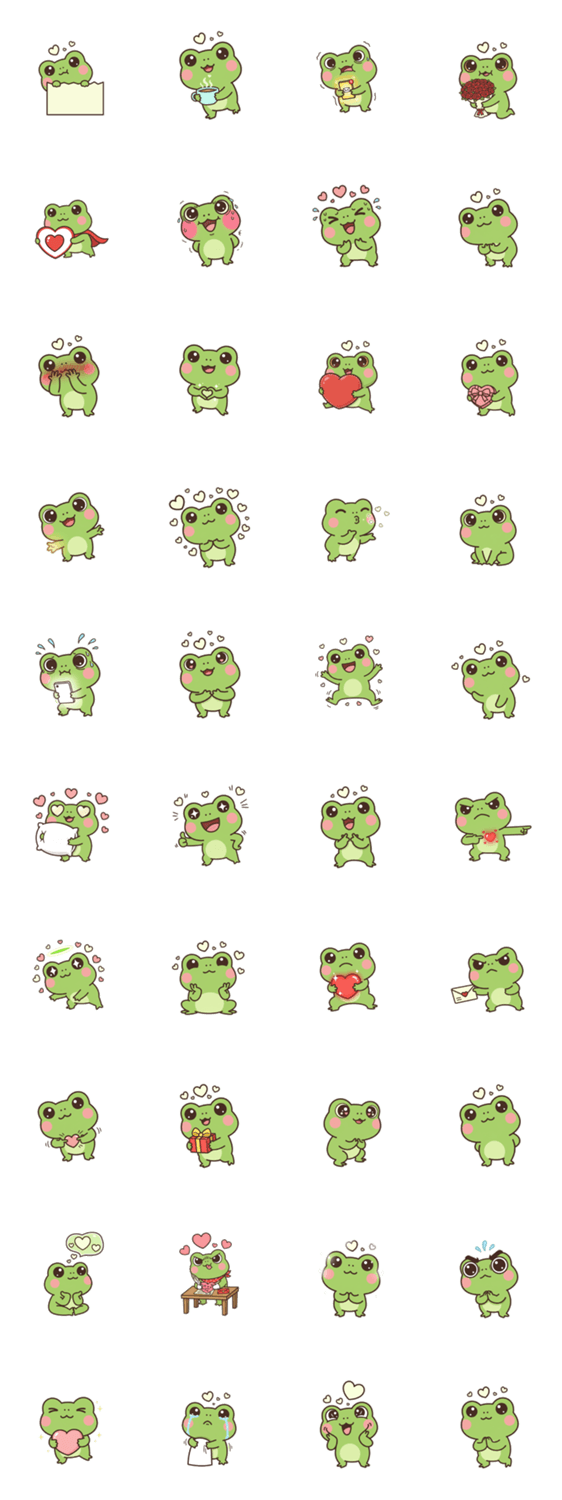 | スタンプ説明 | カエルちゃんが愛を告白しに来たよ!キュートなカエルちゃんの恥ずかしがり屋で誠実な表情と温かい言葉で、大切な人に心からの愛情を伝えましょう。恋人にも友達にもぴった |