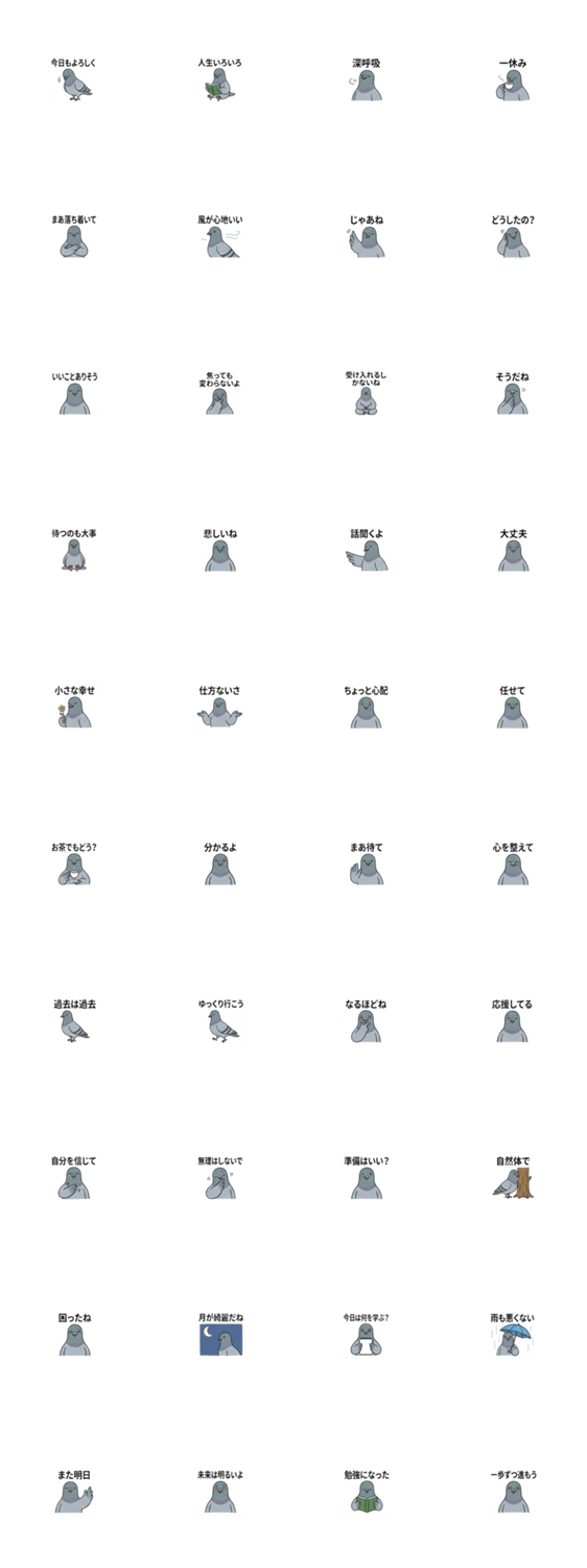 人生経験豊富なハト。悩む友人への返信や心を落ち着けたい時に。優しく寄り添う大人の挨拶です。