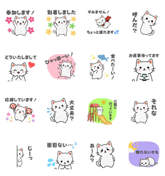 白ネコのあいうえお・・・ってるスタンプ