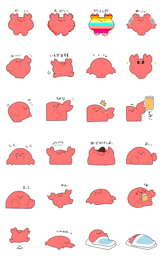 にこにこカニちゃん 毎日ニコニコ!たまにビールで乾杯 癒しと元気を届けるスタンプだよ〜! カニ好きさんに元気とほっこりを届けるスタンプです〜!