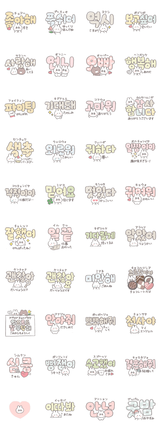 ハングル勉強中の方にシンプルで使いやすい手描きのスタンプです。日韓カップルやお友だち同士でも。 かわちい / 日常 / シンプル 言語 / 手書き