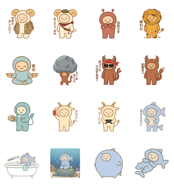 キツネ占いの投稿に登場した12星座の着ぐるみキャラ達をスタンプにしました。 日常会話にそのまま使えて、返事やぼやきにもぴったり。