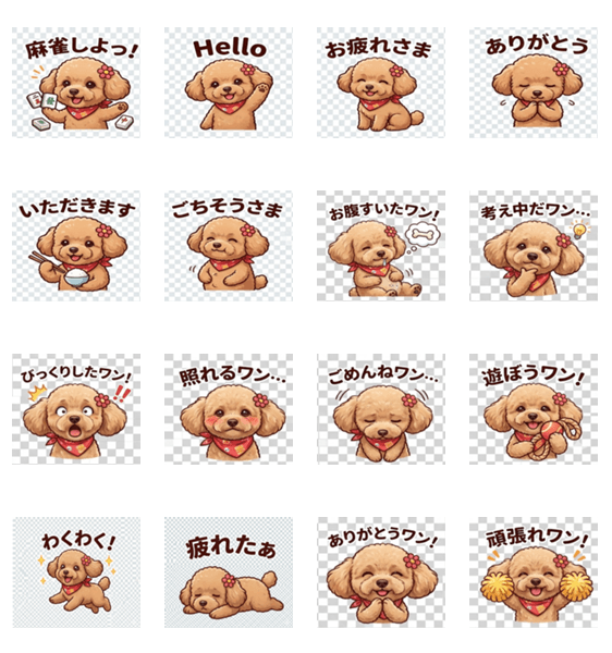 一緒にいるだけで幸せになるトイプードル「ココ」のスタンプです。毎日使えるかわいいスタンプ16個セット!犬好きさんにぴったり♪