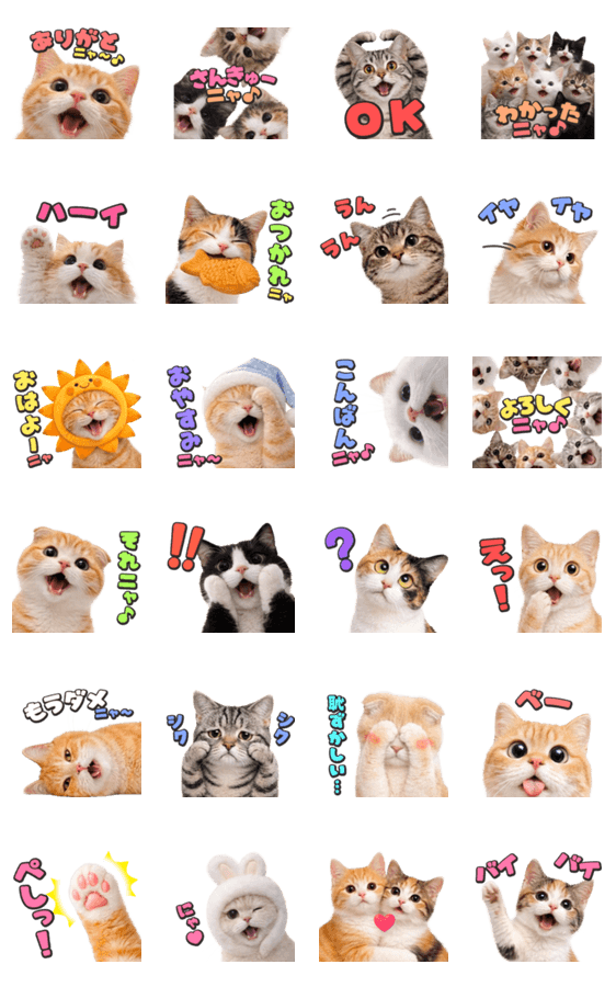 画面いっぱいに広がる可愛さ♡表情豊かな猫たちが元気に飛び出す、癒やし度100%のポップアップスタンプ第2弾♪