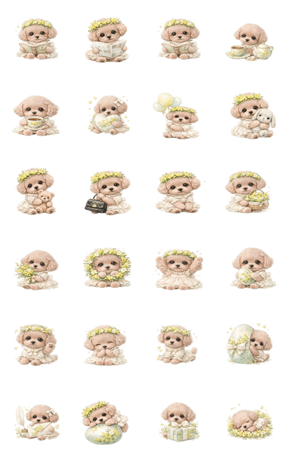 ふんわりマルプーとミモザ (文字なし) -LINEスタンプマニア