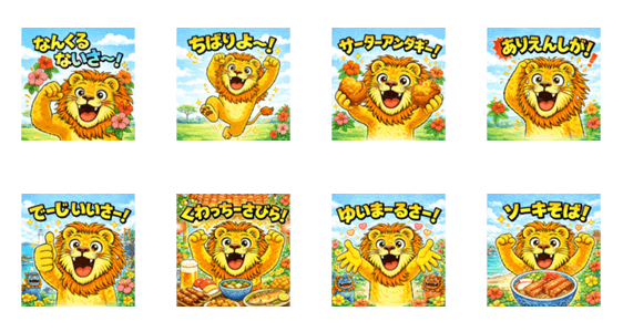 可愛いライオンのスタンプです。沖縄弁バージョン。