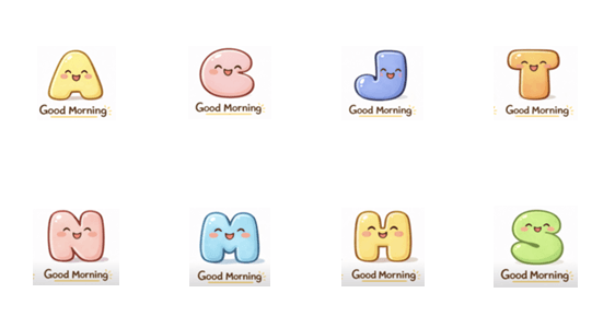 | スタンプ説明 | Cute alphabet characters saying "Good morning". Simple and friendly stickers for daily use. |