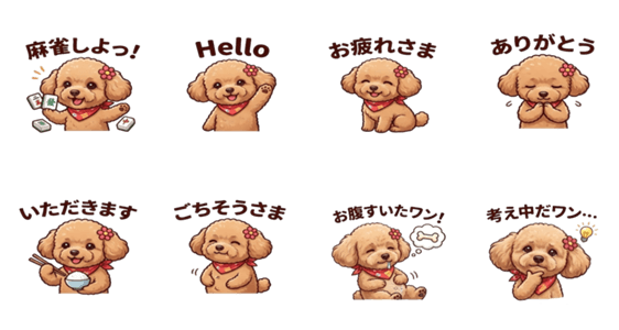 一緒にいるだけで幸せになるトイプードル「ココ」のスタンプです。毎日使えるかわいいスタンプ16個セット!犬好きさんにぴったり♪