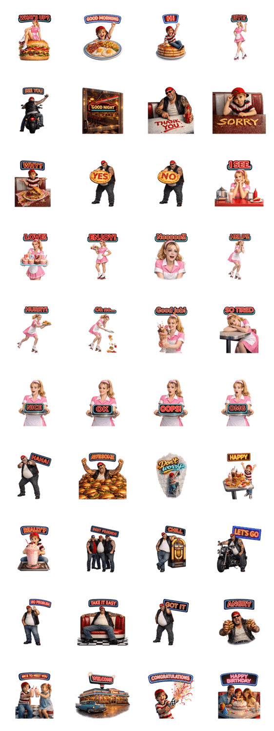 アメリカンダイナー ネオン英語スタンプ -LINEスタンプマニア
