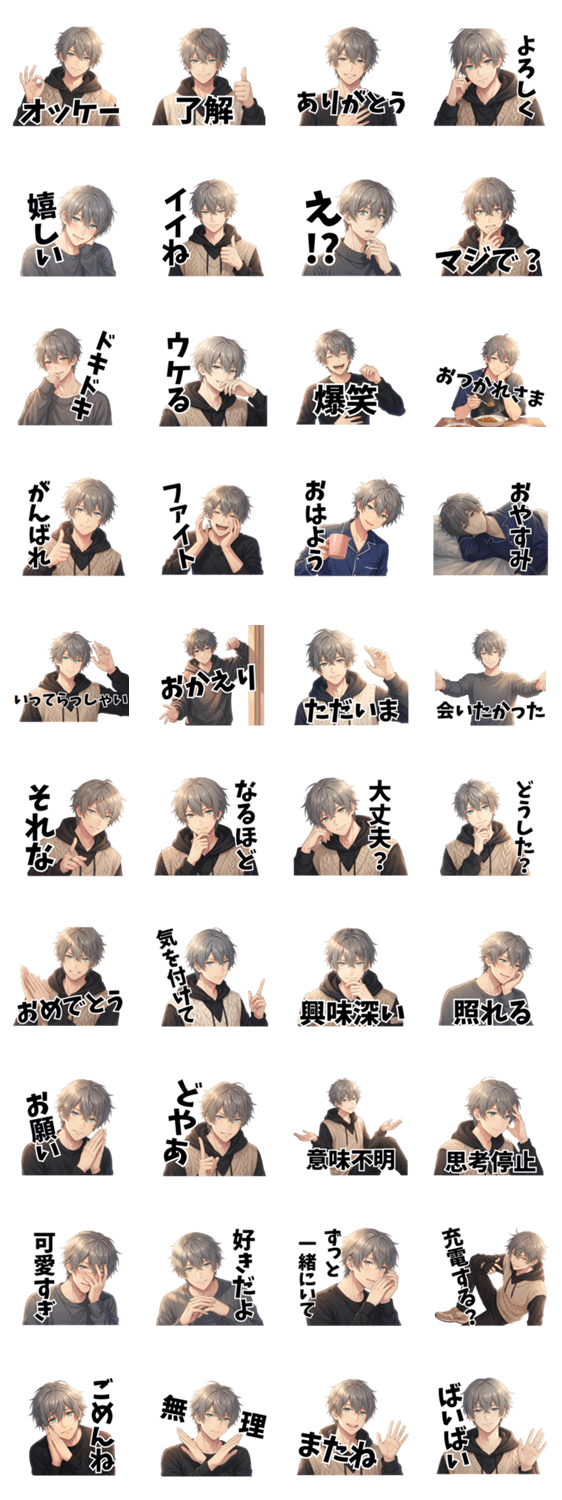 もし推しが彼氏だったらと妄想を形にした日常でも使えるスタンプです 。