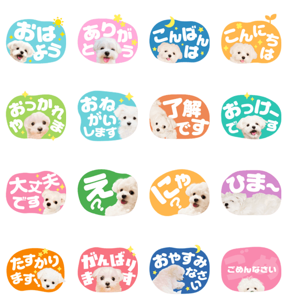 マルチーズのミルの心の声をスタンプにしました。 たまに元気すぎるひとこともあります。