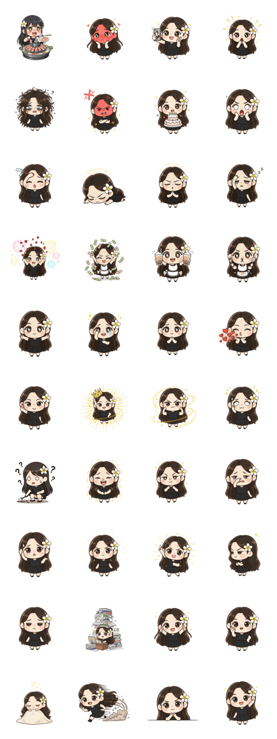 SweetBlush Lynn is a cute chibi girl showing love, sass, shock, selfies, birthday joy, and dizzy days in one adorable sticker set.