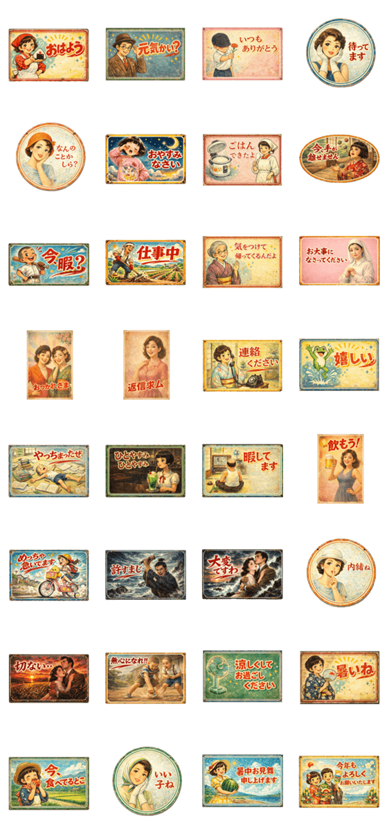 昭和レトロな看板のスタンプで会話に彩りを