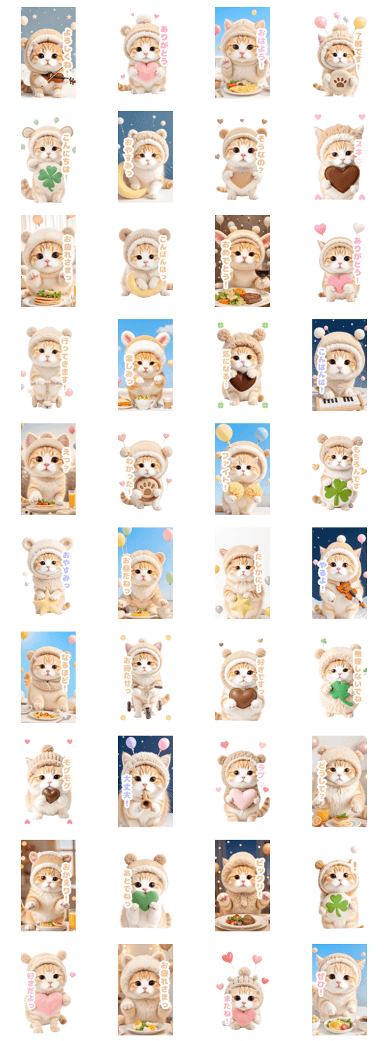 かわいい/可愛い/癒し/挨拶/毎日使える/猫/子猫/日常/ハート/クローバー/ふわふわ/スコティッシュフォールド/ラブリー/風船/星/お部屋/チョコレート/ディナー/ごはん/料理 ※このスタンプはトークルームで大きく表示されるBIGスタンプです。