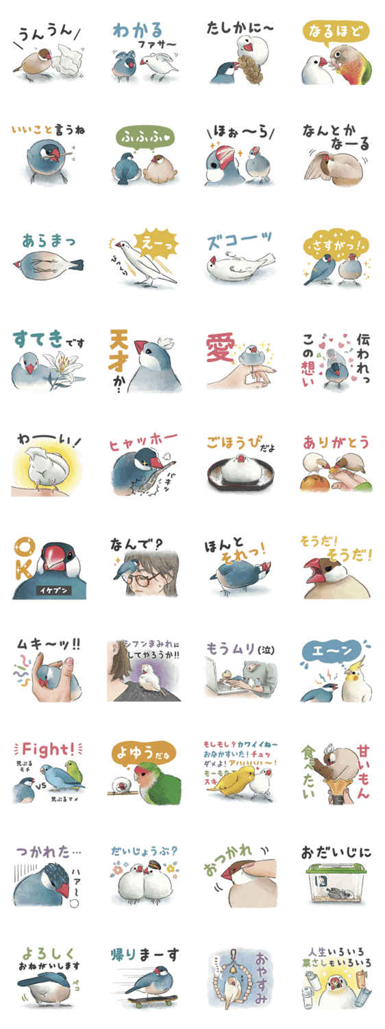 文鳥カタカナ表があいづちスタンプになりました!