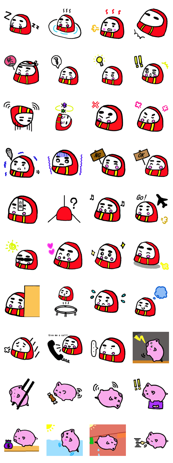 縁起モノ!キュートなダルマ&こぶたちゃん -LINEスタンプマニア