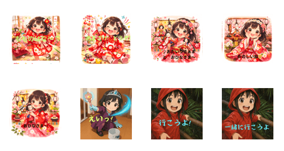 Cute Hinamatsuri girl stickers with bright smiles and festive vibes. Perfect for celebrating March 3rd with warmth and joy!