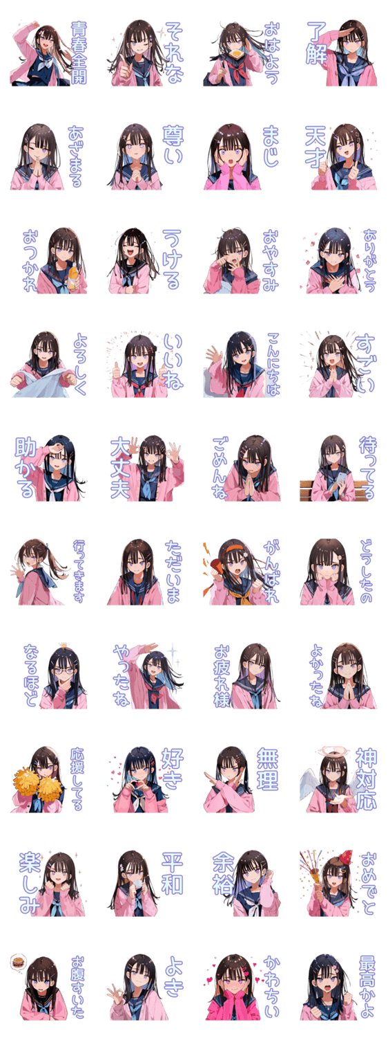 青春全開!セーラー服の女子高生。毎日使える言葉がいっぱい。挨拶/日常/JK/学生/学校/友達/推し/かわいい/制服/応援/部活/恋/女子