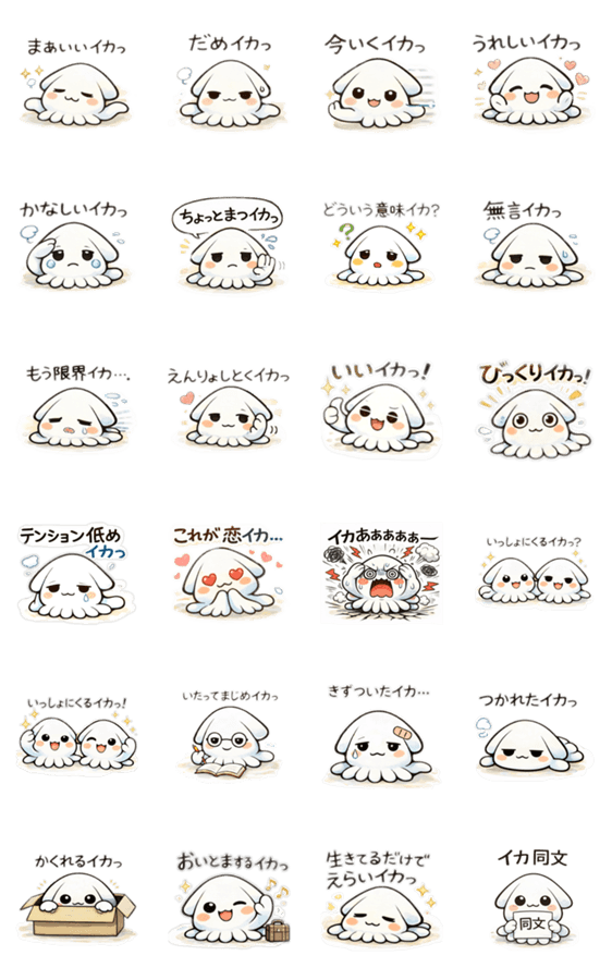 スタンプ説明 脱力系かわいいイカちゃんシリーズ第2弾です。