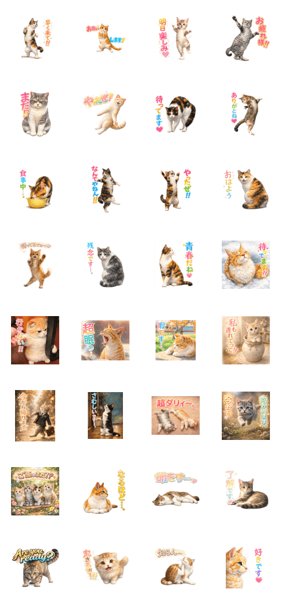新シリーズ”踊る猫”登場!癒しの象徴”猫たち”のスタンプに心癒されてみては…。日常の疲れをこのスタンプで癒します。同僚、友達、両親みんなに癒しをあたえたまえ!
