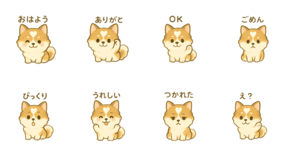 ふんわり可愛いポメラニアンのスタンプです。 きつね顔のパーティーカラー、白いハート模様がチャームポイント! 毎日使える優しい言葉を集めました♪