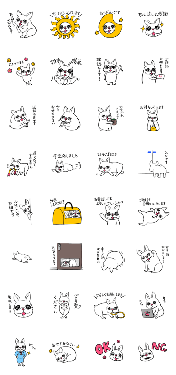 フレンチブルドッグのちゃみちゃんです。 使いやすい敬語スタンプです。