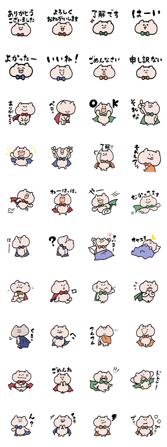 着回しマントねこのあいさつ・返事・リアクション 日常でたくさん使えるスタンプです。