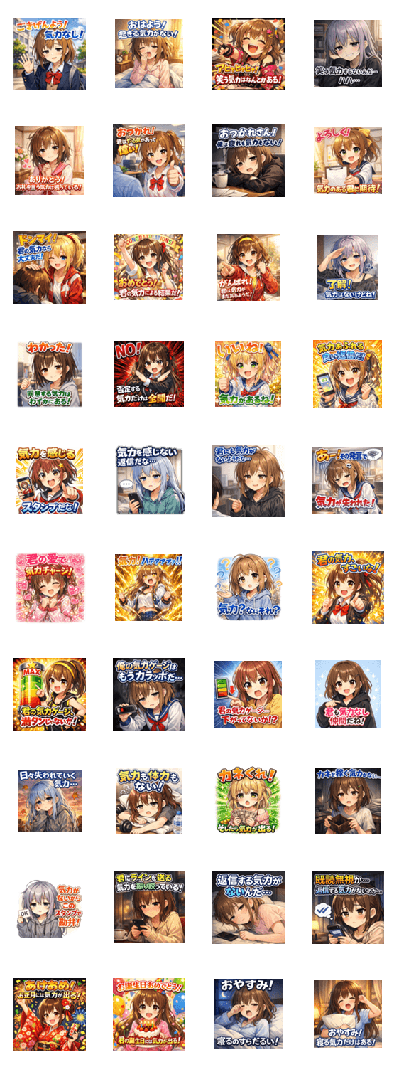 気力のない人におすすめのスタンプです。無気力、モチベーション、やる気なし。憂鬱。社畜、美少女、女の子、かわいい、可愛い、カワイイ、ギャグ、ネタ、面白い、笑える。