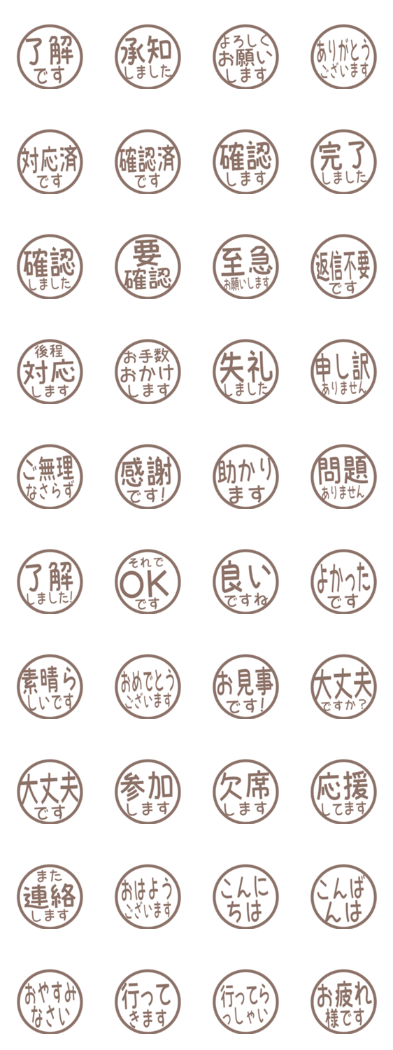 シンプルな敬語のはんこ風スタンプです。毎日の連絡や仕事の返事に使いやすいデザインです。