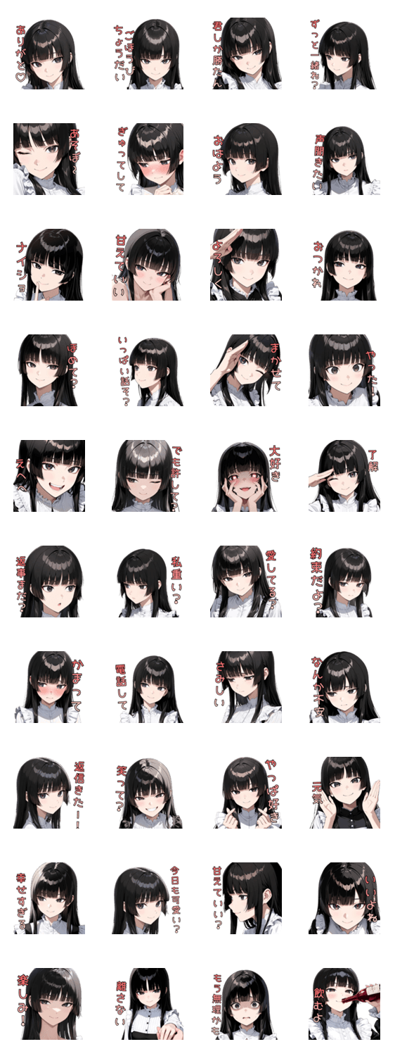 重い?それが愛でしょ。 不安も嫉妬も本気の証。 情緒ジェットコースターな黒髪彼女が、愛も闇も全力でぶつけるメンヘラ系スタンプ。既読スルー禁止