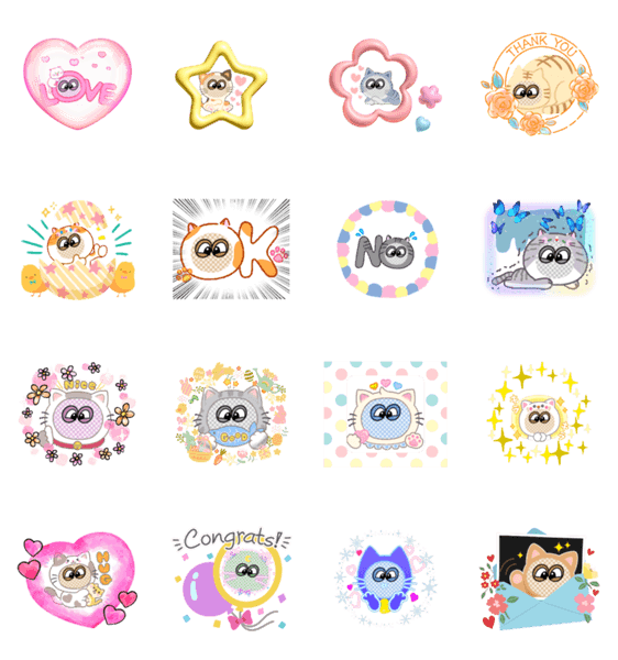 | スタンプ説明 | シンプルで使いやすい「目だけシリーズ」のキモカワネコちゃんスタンプ第2弾。デコフレームで気持ちがしっかり伝わります。友だちや家族との毎日のトークに活躍します。 |