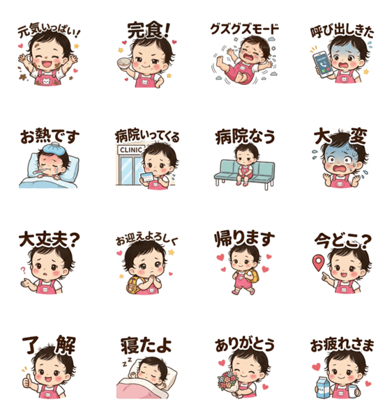 保育園・幼稚園生活やおうち育児中でも近況をサッと報告できる便利スタンプ。青ざめる日もほっとする日も、“わかる…”が見つかるラインナップ!ぜひ使ってみて!