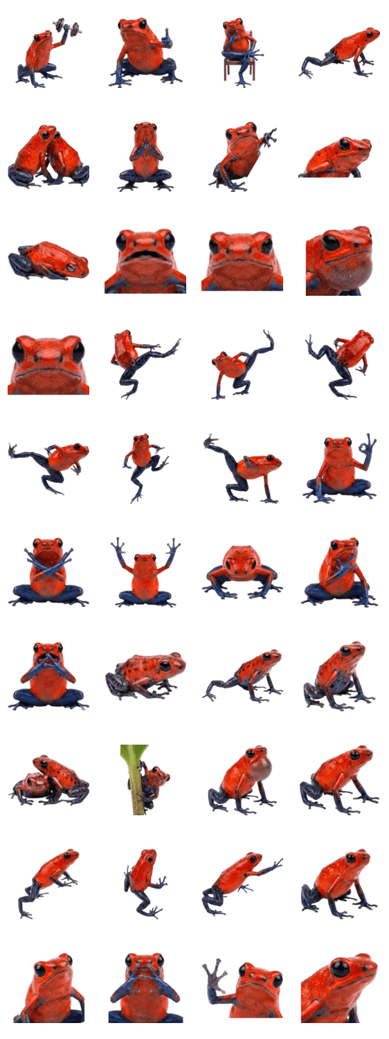 写真風 リアル 両生類 カエル 毒ガエル 赤 青 カラフル 熱帯 雨林 クール 迫力 生き物 観察 トーク用 LINEスタンプ 人気 珍獣 世界 かわいい