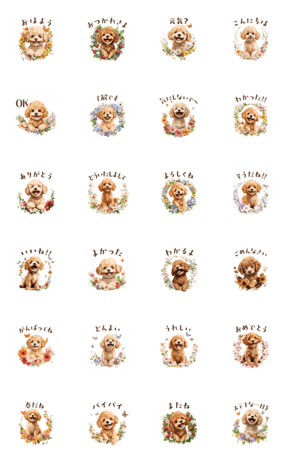ぽかぽか春を感じる、動く子犬トイプードルのスタンプ♪見ているだけで癒される、普段使いしやすい春のアニメーション・スタンプです。