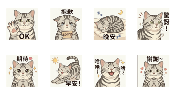 Cute cat expressions and everyday phrases