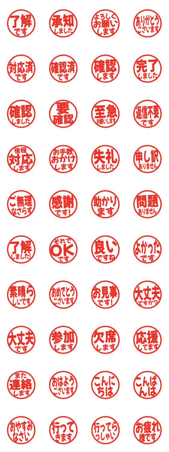 シンプルな敬語のはんこ風スタンプです。毎日の連絡や仕事の返事に使いやすいデザインです。