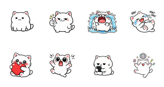 白ネコのあいうえお・・・ってるスタンプ