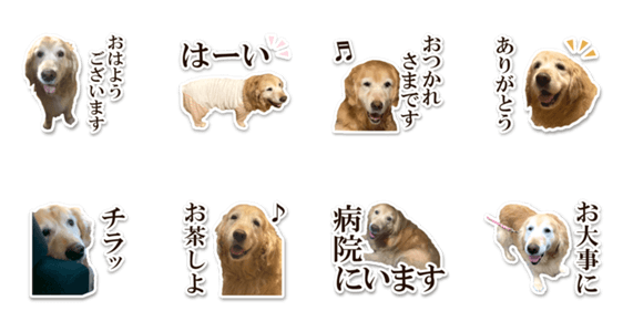 おはようございます・おつかれさま・ありがとう等の使いやすい挨拶・お返事♪実写の可愛いワンコ絵文字♪