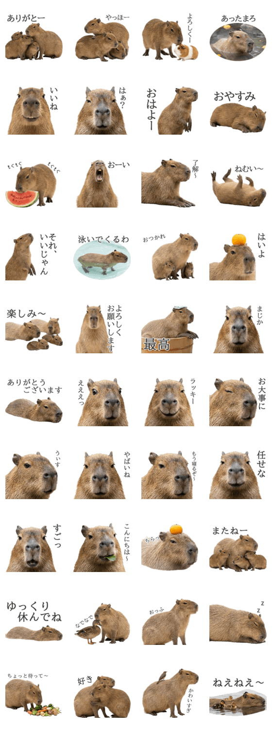 ずっと使える カピバラ 実写 写真風 リアル 動物 もふもふ かわいい 癒し系 のんびり 日常 使いやすい トーク用 反応 スタンプ LINE 人気 ゆるい のんびり優しいほのぼの