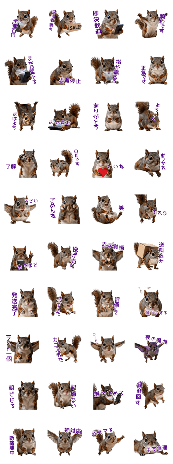 | スタンプ説明 | 深夜テンションモモンガがフリマで全部値下げ暴走!夜中の衝動買い、沼や推し活にハマる夜型人間に。思考停止で経済を回す、シュールな自虐ネタスタンプ。 |