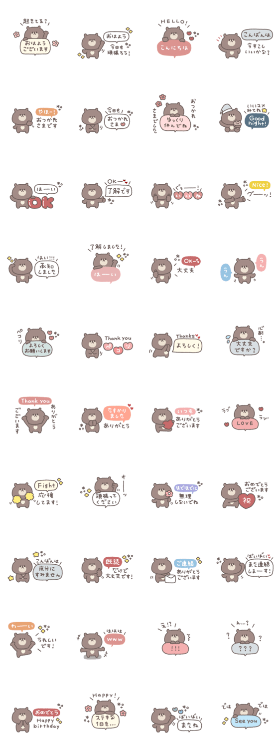 一つあると便利な小さくてかわいいくまのスタンプです。 くま/大人可愛い/シンプル/あいさつ/吹き出し/くすみカラー/長文