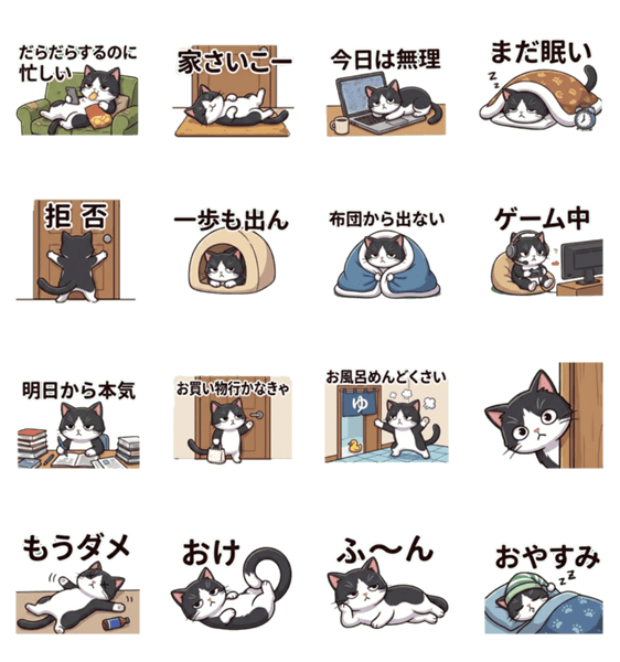 家から出たくない☆ハチワレ -LINEスタンプマニア